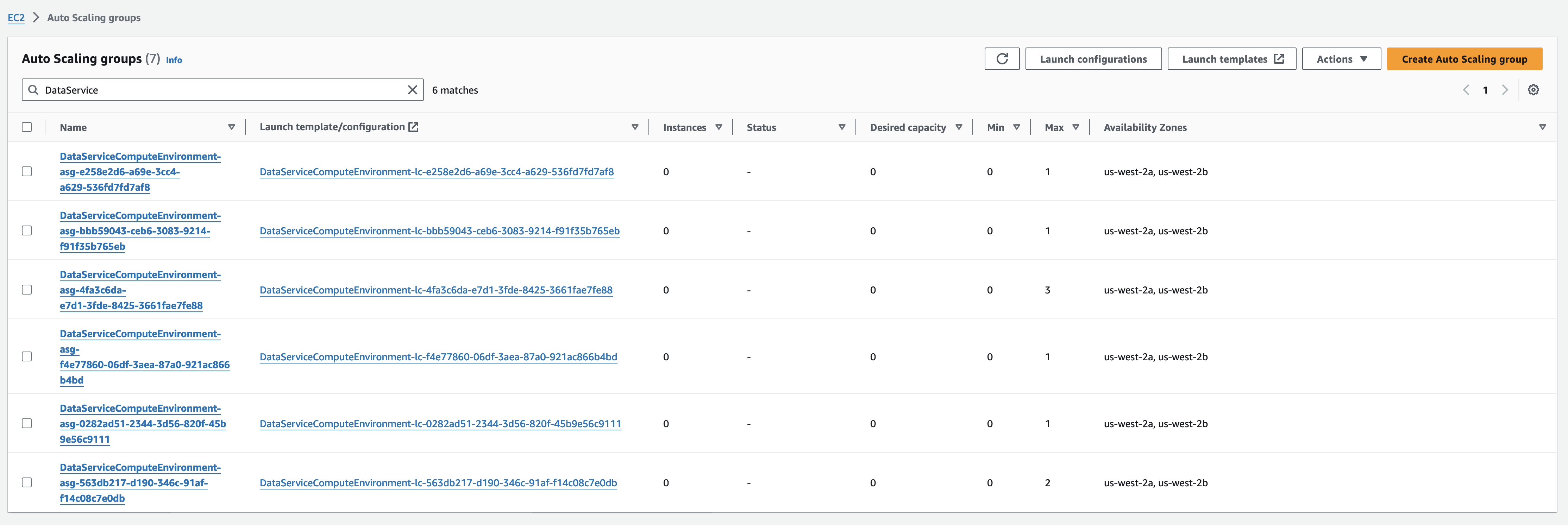 When I looked into the Launch Configurations I had defined, I was surprised to see that they didn’t have a CloudFormation stack attached. After some digging, I realized that these auto-scaling groups and Launch Configurations were associated with AWS Batch.