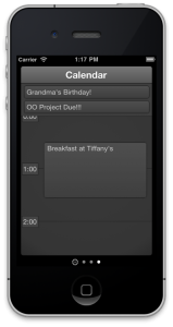 Here are a few screenshots of the bus and calendar widgets from the final application.